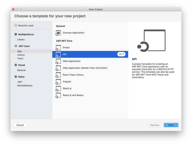 Начнем с создания нового проекта в Visual Studio for Mac.