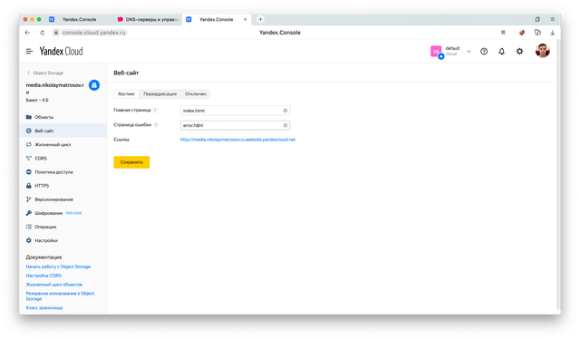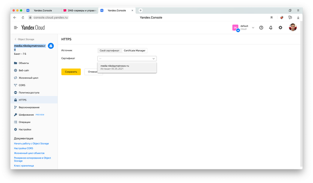 Свой домен для Yandex Cloud Object Storage