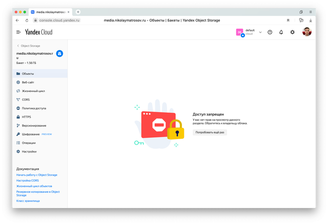 Соответственно, если кто-то попытается встроить видео напрямую из вашего бакета к себе на сайт, у него ничего не получится. Он вместо этого получит ошибку HTTP/1.1 403 Forbidden.