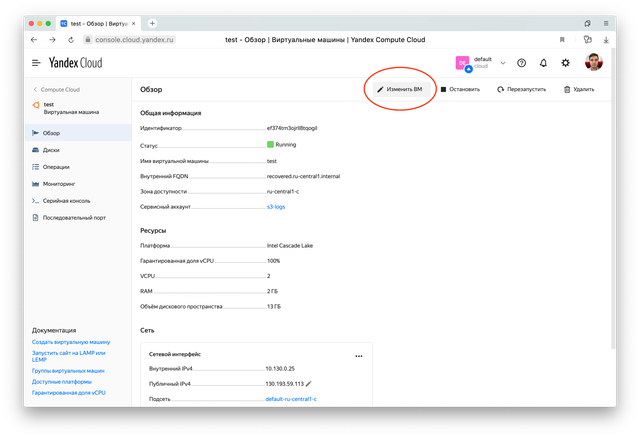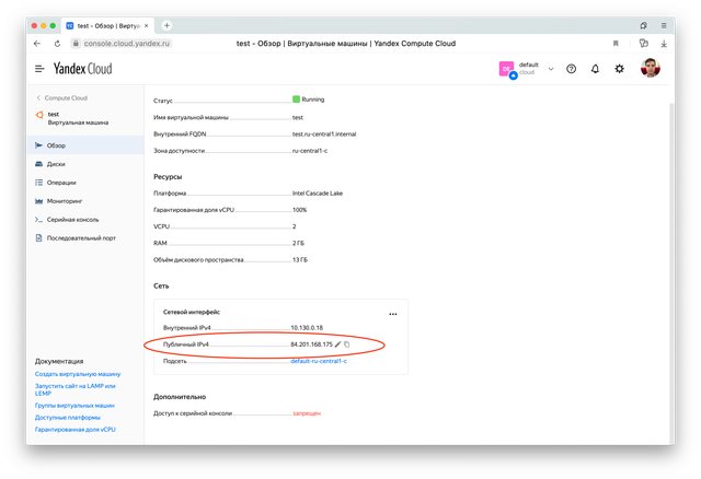 Как это проверить? В консоли откройте просмотр своей ВМ и внизу страницы найдите публичный IPv4 адрес. Если это не тот адрес, который вы указываете в параметрах подключения ssh, то логично почему подключение не работает — вы подключаетесь не к своей ВМ.