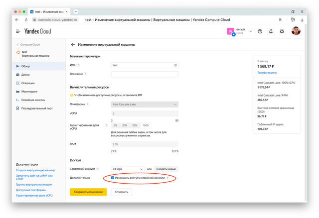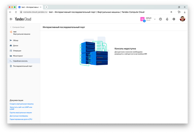 И так, как же подключиться? Перейдите к вашей ВМ, выберите таб Серийная консоль.