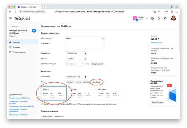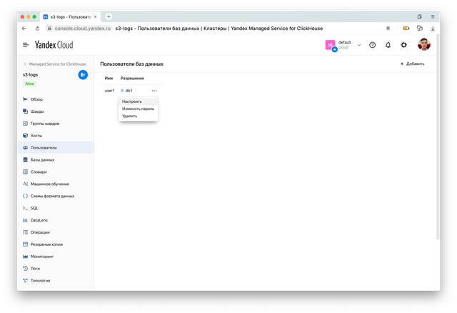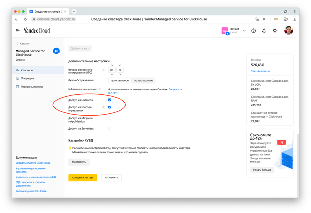 Вторым этапом будет создание managed-сервера ClickHouse. Он будет выступать источником данных для DataLens.