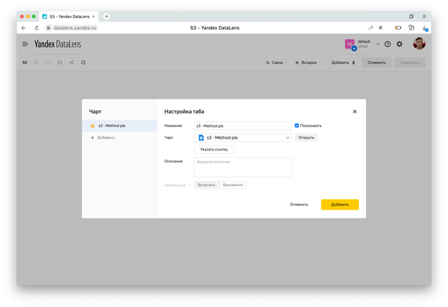 Теперь можно сохранить датасет. И приступить к созданию чартов на основе этого датасета.