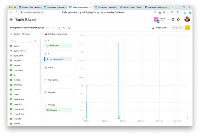 Как настроить экспорт логов из Yandex Cloud Object Storage и наглядно их анализировать при помощи интерактивных графиков в DataLens.