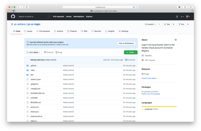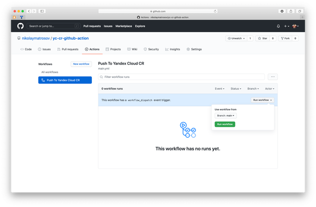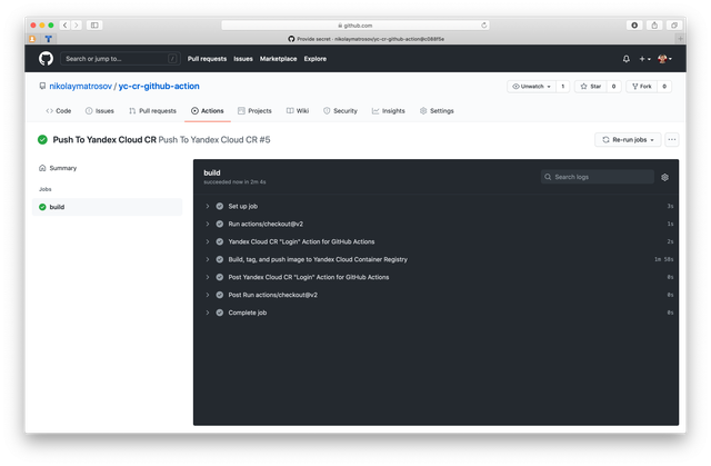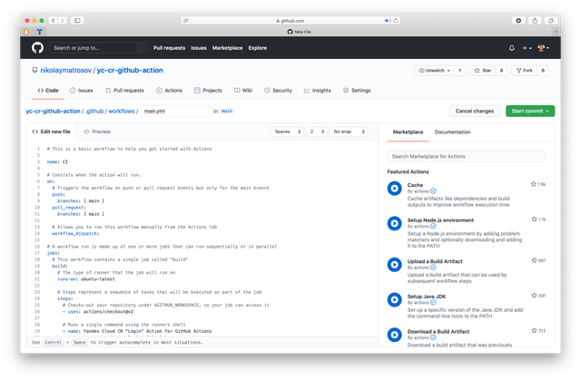 GitHub Action для пуша в Yandex Cloud Container Registry