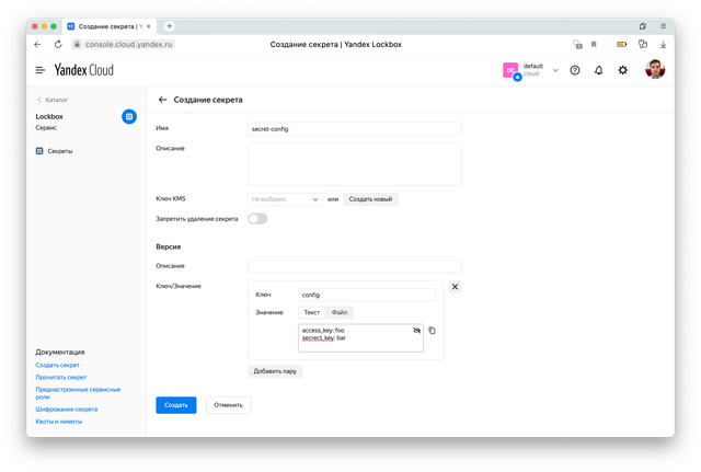 - "sudo /root/yandex-cloud/bin/yc lockbox payload get --id $secret_id --key config --cloud-id $cloud_id --folder-id $folder_id > /data/test.conf"