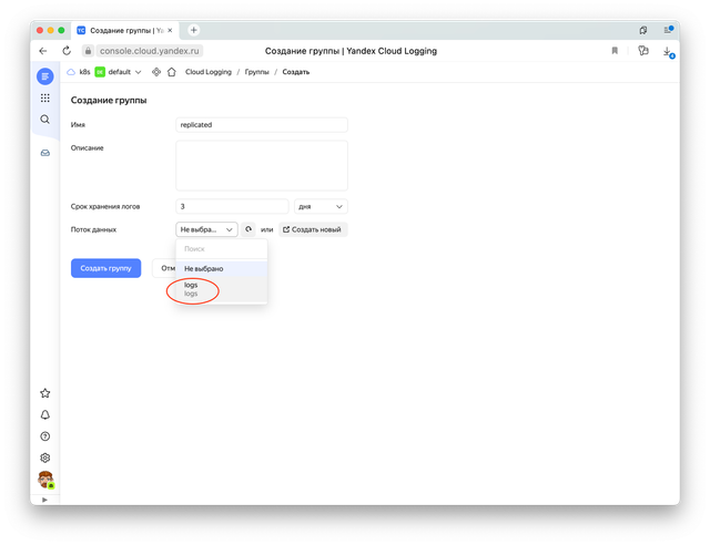 Теперь можно создать лог-группу в сервисе Cloud Logging. Ее мы сможем указывать в функции, serverless контейнере, API Gateway или любом другом месте откуда мы собираемся писать логи.