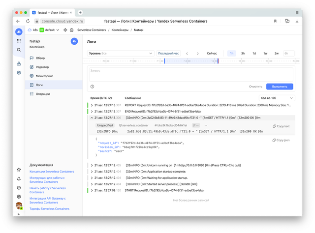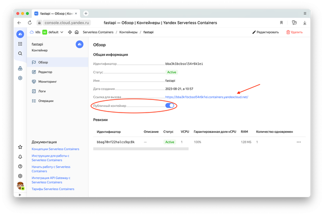 Как запустить Fastapi в Yandex Cloud Serverless Containers