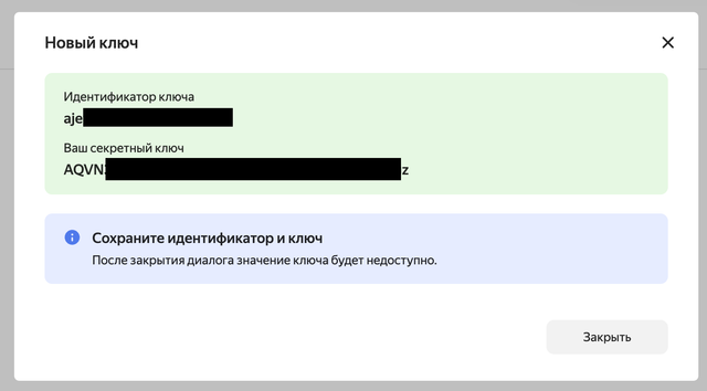 postbox.sender. - Создайте API-ключ и скопируйте его. Для большей безопасности, вы можете ограничить скоуп прав ключа той же ролью